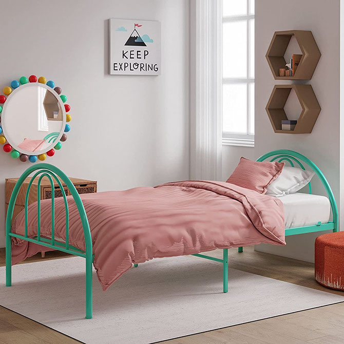 With a sleek, simple design, the Brooklyn Metal Twin Bed is the natural next step for your child as they transition out of the crib or toddler bed. Solid steel construction provides years of use, with six points of contact delivering reliable support whether your child is sleeping or playing (because we know jumping on the bed is inevitable!) Available in a wide array of colors to suit both your child's preference and your home décor, this classic twin bed assembles quickly and easily with all necessary parts and tools included.
