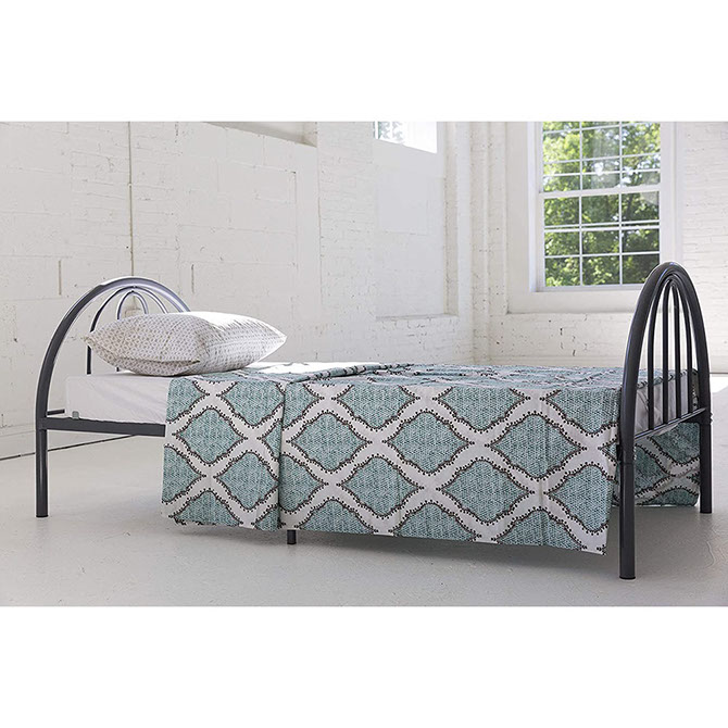 • Durable finish wipes clean easily – Headboard, footboard, full metal slat mattress support included – Box spring or bunkie board not required – Quick and easy assembly with necessary tools included – Fits a standard twin sized mattress (not included) – Maximum weight capacity of 300 lbs.
