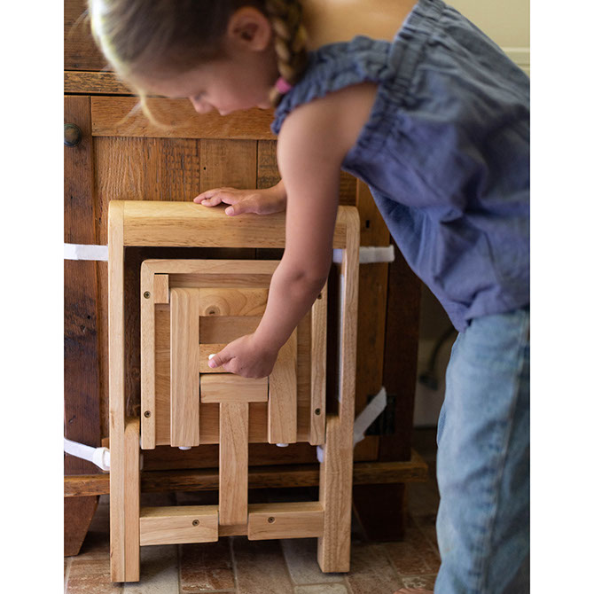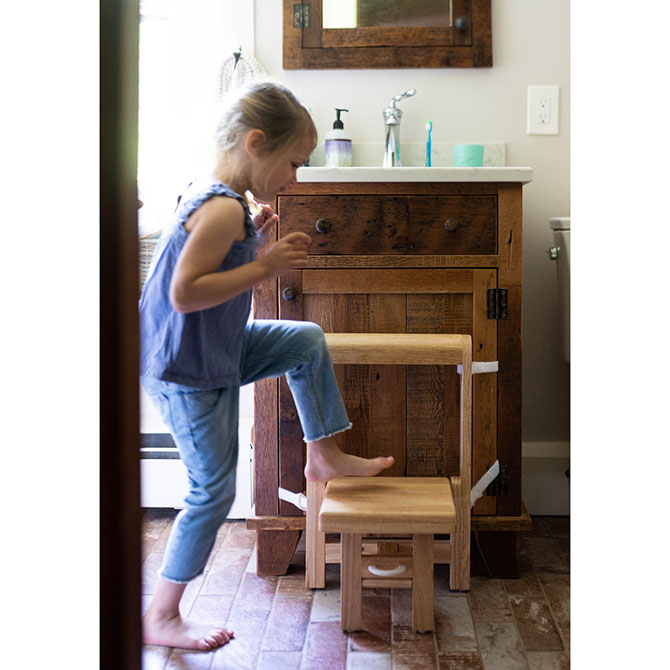 Empower your toddler and save space with the Busy KidsTM Fold ‘N Store Step Stool! This sturdy, solid wood, flat-folding stool is the perfect addition to a toddler’s bathroom or kitchen routine. Give them a place to participate in washing their hands, brushing their teeth, food prep, and much more!