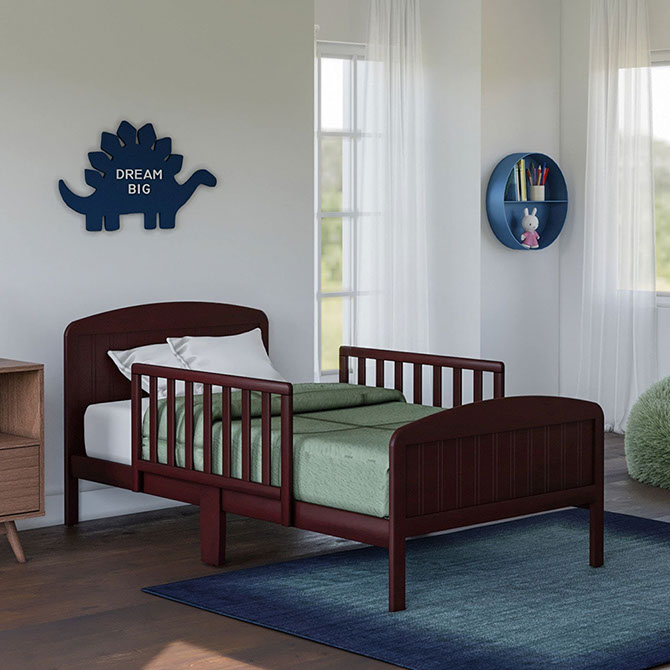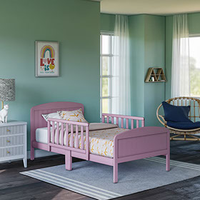 Encourage your child's growing independence with the Harrisburg Toddler Bed. An exciting next step for transitioning out of the crib, this simply-styled bed features solid wood construction, a low profile for easy in-and-out, and large middle side rails to help prevent your child from falling out of the bed. Available in a wide array of colors to suit both your child's preference and your home décor, this classic bed will have you and your little one sleeping soundly!