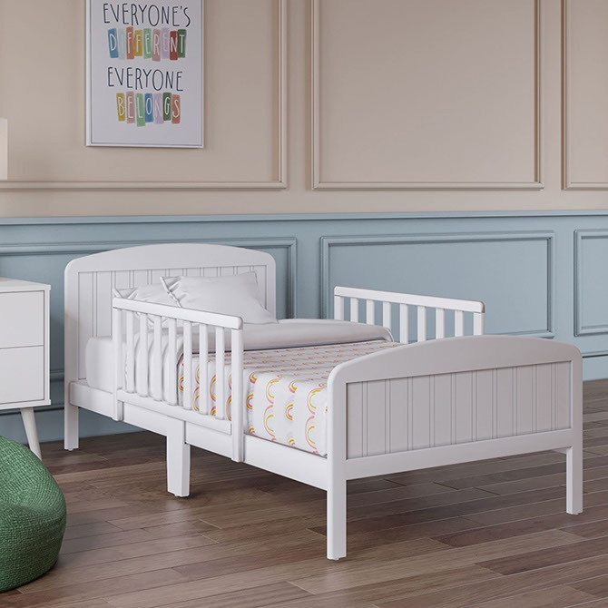 • Durable finish wipes clean easily – Headboard, footboard, and two side safety rails included – Quick and easy assembly with necessary tools included – Suitable for ages 1.5 to 5-years-old