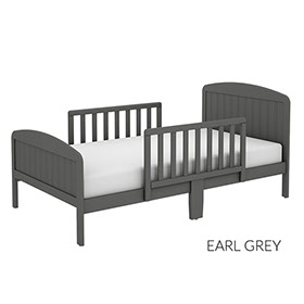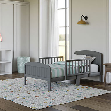 • The Harrisburg Toddler provides an exciting next step for your little one with a simple design that emphasizes safety. Two large side rails help prevent your child from rolling out of bed, while providing enough space for them to climb in and out independently.